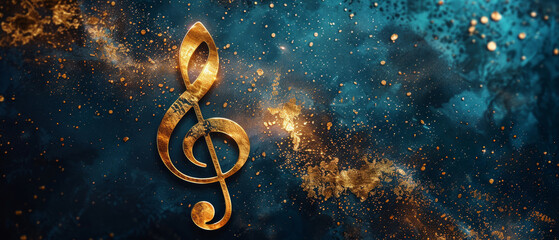 A golden musical clef against a cosmic background with stars — suitable for album covers, music projects, and creative presentations.