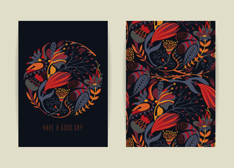 Cover design with floral pattern. Hand drawn creative flower. Colorful artistic background with blossom. It can be used for invitation, card, cover book, catalog. Size A4. Vector illustration, eps10