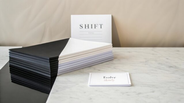Elegant Arrangement of Minimalistic Stationery with Black and White Design on a Marble Surface in Modern Workspace Setting