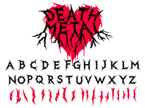 Spiked, gothic black font with sharp edges, overlaying a bleeding red heart graphic. The style is bold and dramatic, blending death metal aesthetics with intense emotional themes.