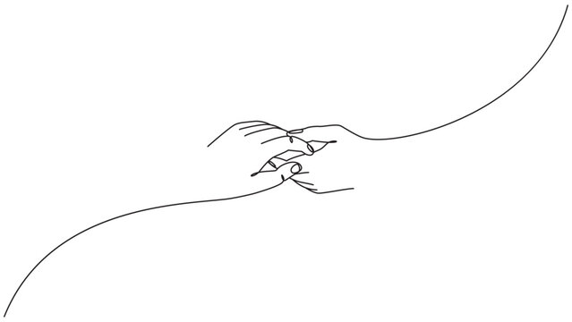 Continuous line art illustration of two hands touching, representing connection