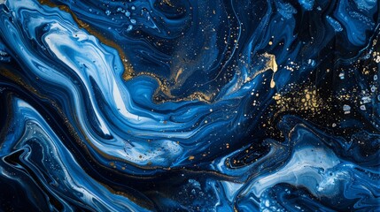 Mesmerizing fluid art with swirling blue and gold tones