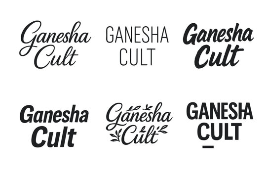 Ganesha Lettering Variations. Ganesha Cult. Set lettering. harmonious lettering variations of the same emblematic concept, each with different artistic