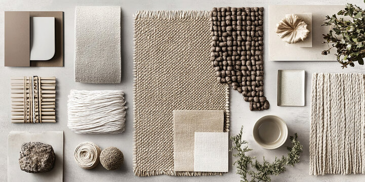 AI generated illustration of a simple moodboard inspiration design in a green brown color palette