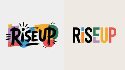 a split composition displays the phrase rise up in two distinct artistic styles one with colorful brushstrokes and another with bold typography high quality professional detailed