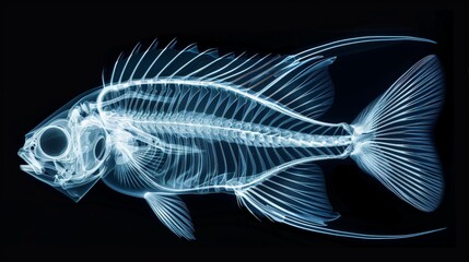 Eerie Illumination of a Fish Skeleton in the Shadows. Generative AI