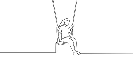 Melancholic Anime Girl Sitting Alone on a Swing in the Dark Night