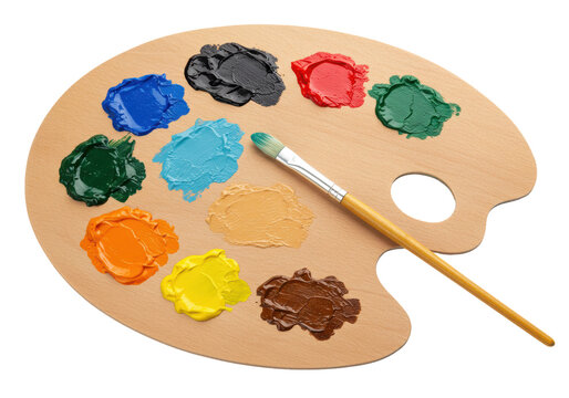 Isolated Artists Palette with Vibrant Acrylic Paint Swatches