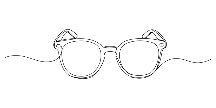 Continuous one line of a glasses, symbolizing a fashionable lifestyle, hand drawn vector illustration.