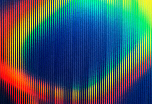 Abstract neon rainbow arcs with striped texture around a deep blue core, a vibrant digital art background ideal for branding, marketing, design projects and presentations