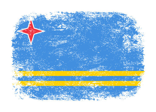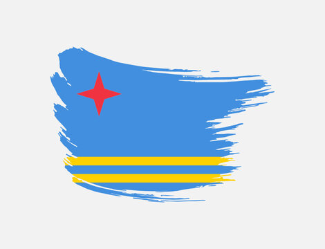 Textured collection national flag of Aruba on painted brush stroke effect with white background