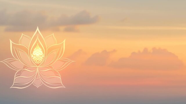 Glowing lotus flower animation in the sky for buddhism spiritual meditation and relaxation video footage.