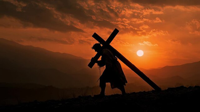 Holy saturday cross silhouette at sunrise concept
