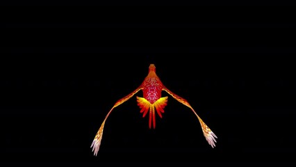 Phoenix Bird - Hot Red - Flying Loop - Back View - Alpha Channel - Isolated 3D Animation