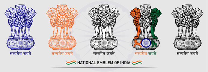Ashok pillar vector sign symbol set in different style. Satyamev jayate, Ashok stambh symbol. National emblem of india, Government of India. Isolated vector illustration. Flat design.