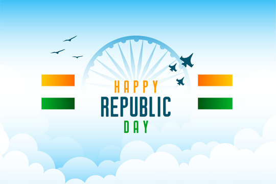 happy republic day patriotic background with tricolor flag and ashok chakra