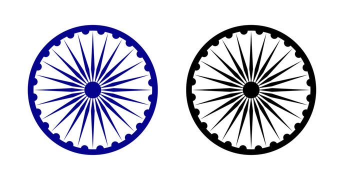 Ashoka chakra icon set blue and black color. Ashoka Chakra-symbol from the flag of India. Ashoka Wheel for Indian Independence Day. Flat design vector illustration.