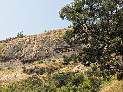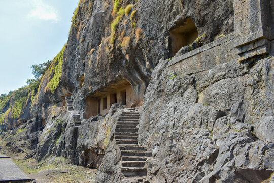 view of Lenyadri Ganapati cave temple on Lenyadri hill: Junnar-Pune, Maharashtra-India, 11.09.2024