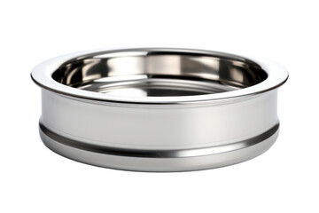 A stainless steel pet food bowl with a lid to keep food fresh and prevent spills, isolated on a white background