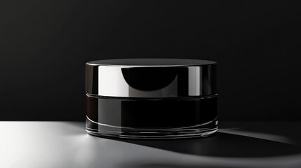 Men’s hair gel container with bold shadows and chrome lid - modern black background product