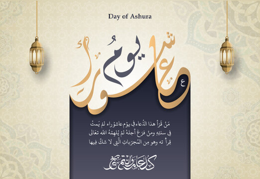 Arabic calligraphy Ashura, ashura day. the tenth day of Muharram, the first month of the Islamic calendar. arabic text mean: "Ashura is the tenth day of Muharram in the islamic calendar"