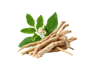 Ashwagandha or Aswaganda OR Indian Ginseng is an Ayurveda medicine Isolated on plain background