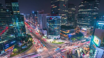 night cityscape at gangnam square in Seoul city South Korea