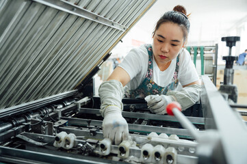 Asian attractive man industrial worker working in manufacturing plant.