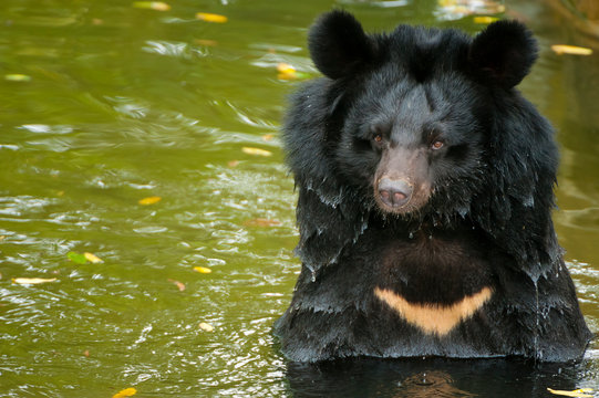 Asian black bear in lake