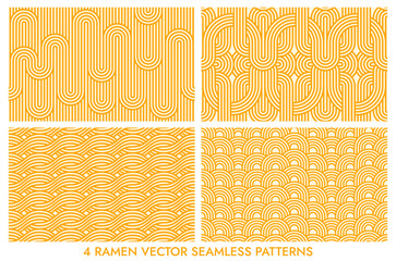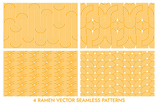 Yellow instant noodle, pasta and spaghetti texture with geometric wavy lines. Ramen, pasta vector pattern. Background abstract food illustration