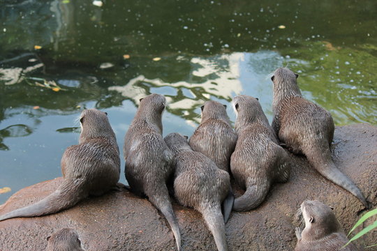 Group of oriental small-clawed otter (Amblonyx cinereus), also known as the Asian small-clawed otter.