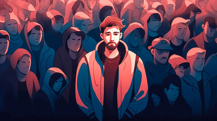 silhouette of preteen boy in negative mood, fictional place and person, Generative AI
