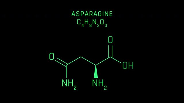 Asparagine Molecular Structure Symbol Neon Animation on black background