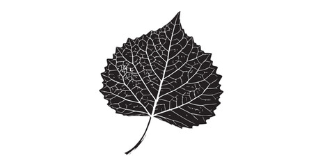 Detailed close up of a black and white aspen leaf vein structure silhouette