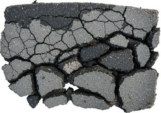 Old damaged and worn asphalt road with pothole filled with new bitumen