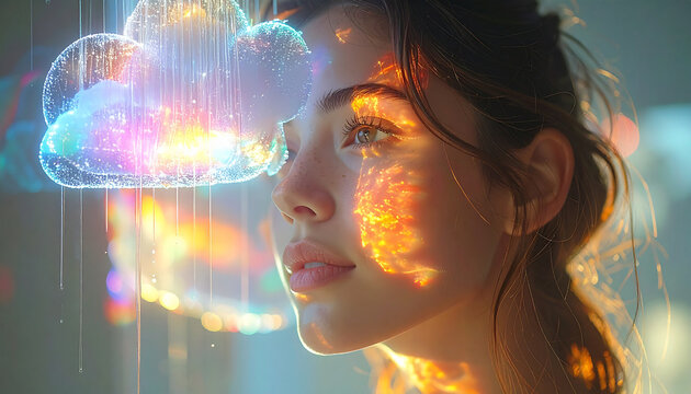Inspiring celestial journey featuring whimsical clouds sparkling stars and a radiant crescent moon urging grand aspirations and boundless potential