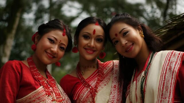 Festive Magh Bihu Animation 4k Traditional Assamese Celebrations with Drums, Sweets, and Cultural Richness in a Vibrant Design