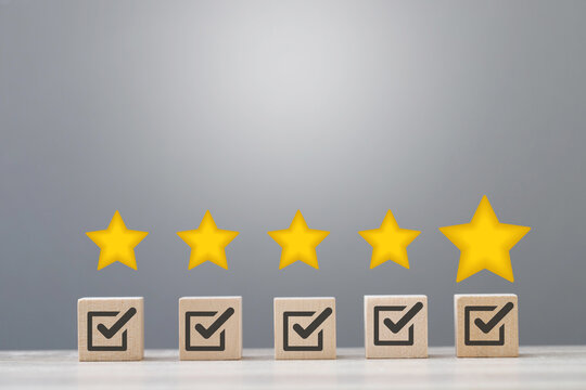 wood cube block with customer satisfaction rating to measure product evaluation