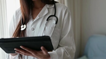 Healthcare, Medical service and Health insurance concept. Medicine doctor use tablet to review patient medical records on virtual screens for digital healthcare.