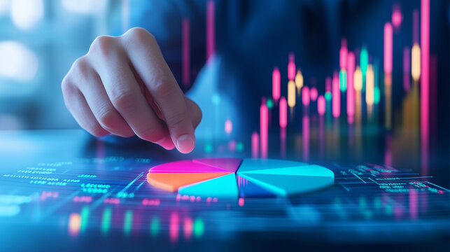 Financial dashboard showing diversification of investment or asset allocation or portfolio management on stock market and fund, analysis and research investment plan