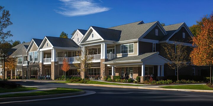 A vibrant garden scene at a care facility, featuring colorful flowers and a bright atmosphere, where an elderly person is strolling, providing a peaceful environment for residents