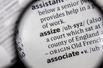 Schwurgericht. Mann (Anwalt) bei Beobachtung mit Fernglas. Fokus auf Text/Wort in einem Papier Riss.