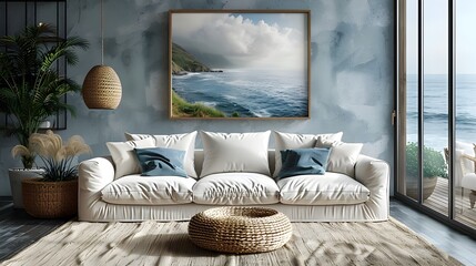 Modern Living Room Wall Art Stylish ISO Asized Frame Mockup in a Trendy Home Interior