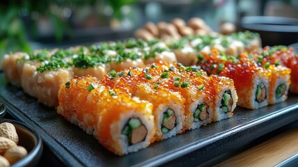 Sushi buffet promotion with mouth-watering sushi and sashimi