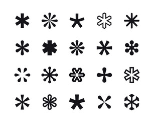 Set of asterisk vector icons. Black grammar star icon. Vector 10 Eps.