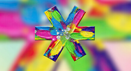 A colorful asterisk with glitter and paint strokes on a blurred multicolored background design art
