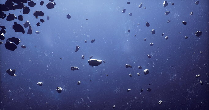 A multitude of asteroids drifts in the deep expanse of space, creating a stunning celestial view. This vast area showcases the beauty and mystery of the universe.
