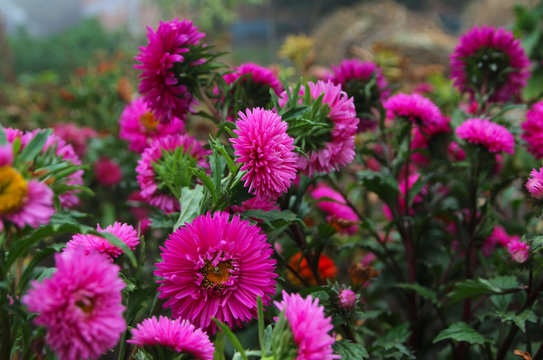 Pink fall flowers asters