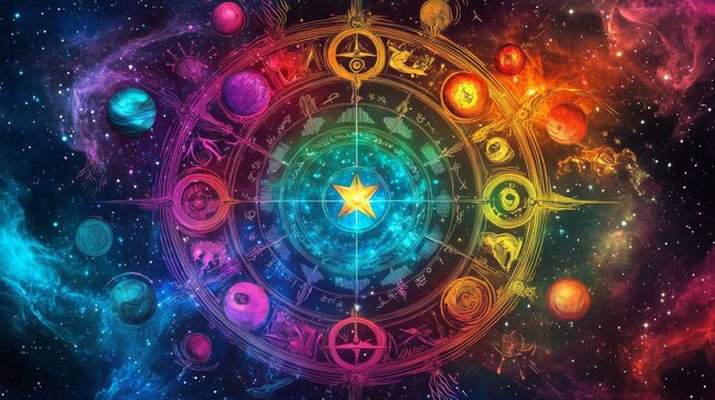 Cosmic geometric icons: An assortment of abstract, geometric astral illustrations in gold, showcasing intricate sunburst patterns and celestial motifs for sophisticated and mystical, or astrology-them