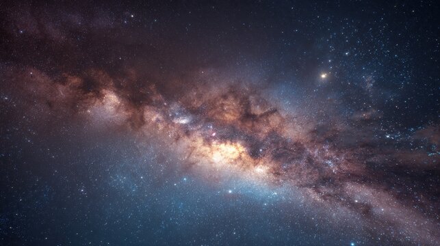 Starry night sky featuring the Milky Way and cosmic elements on a dark backdrop